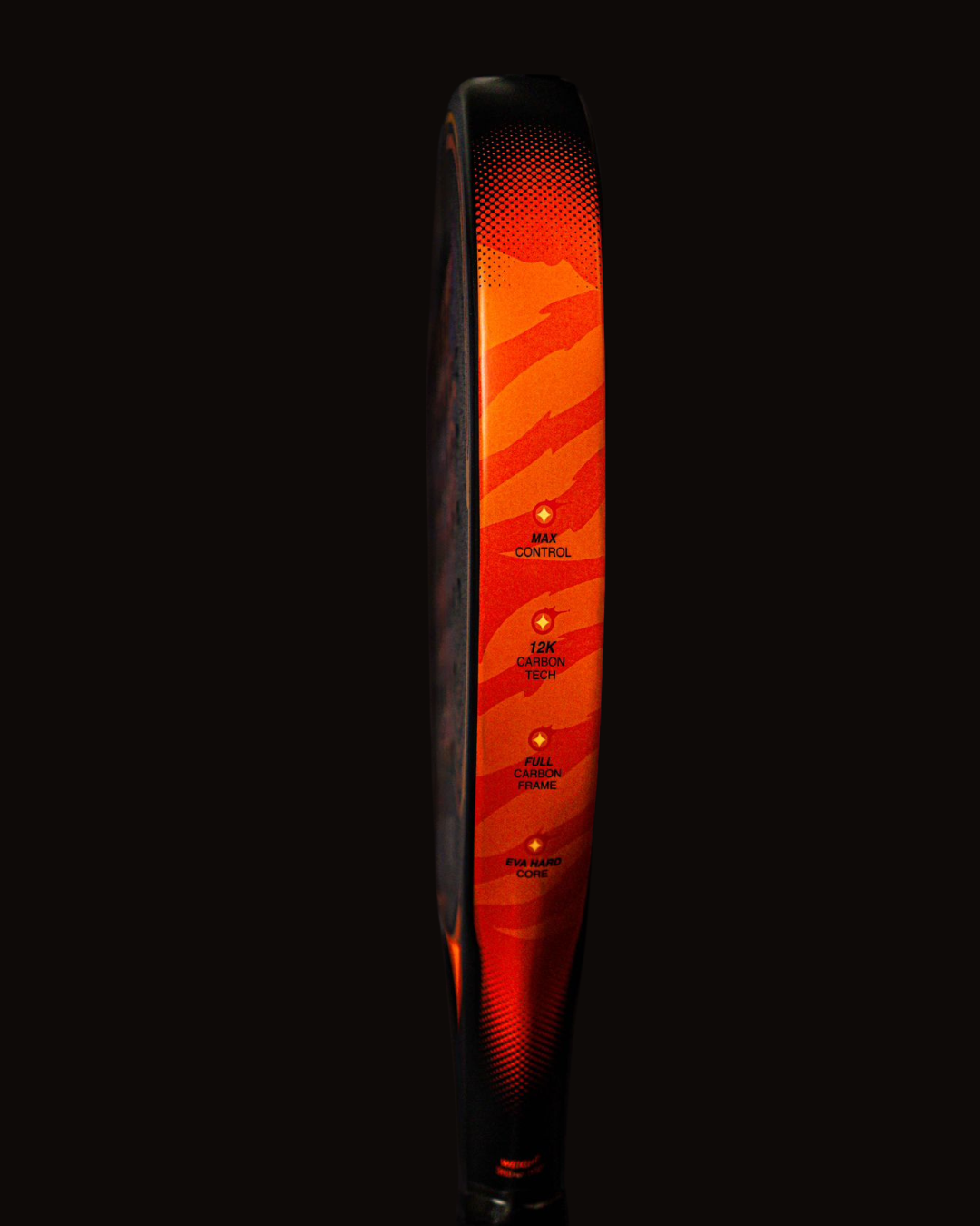 Cuenta con un amplio punto dulce que permite un impacto noble y certero de la pelota, al mismo tiempo que el material 12K de Fibra de Carbono de la cara de la pala y su interior Black EVA Hard permite que la pelota despida más fácilmente, logrando un juego controlado.