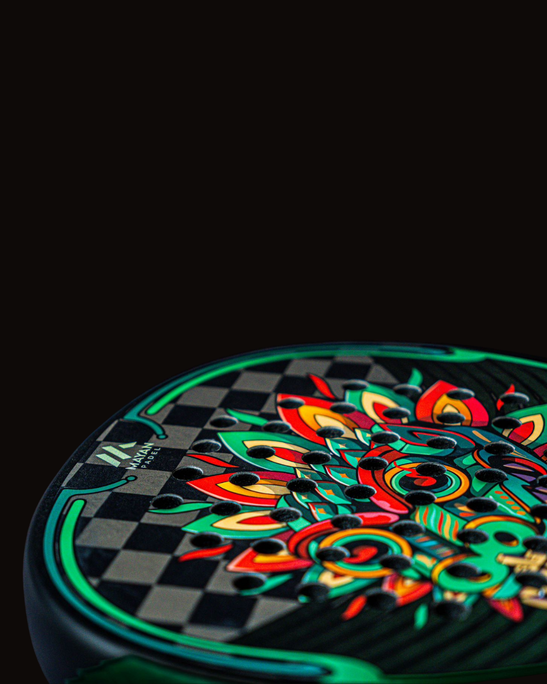 Su balance medio y su punto dulce más cargado a la parte superior de la pala, permite un estilo de juego más agresivo y de ataque. Su material 18K de Fibra de Carbono de la cara de la pala y su interior Black EVA Hard hace el juego aéreo más peligroso y permite remates potentes, sin sacrificar el control que brinda su forma de lágrima, lo que la convierte en una perfecta pala de padel polivalente.